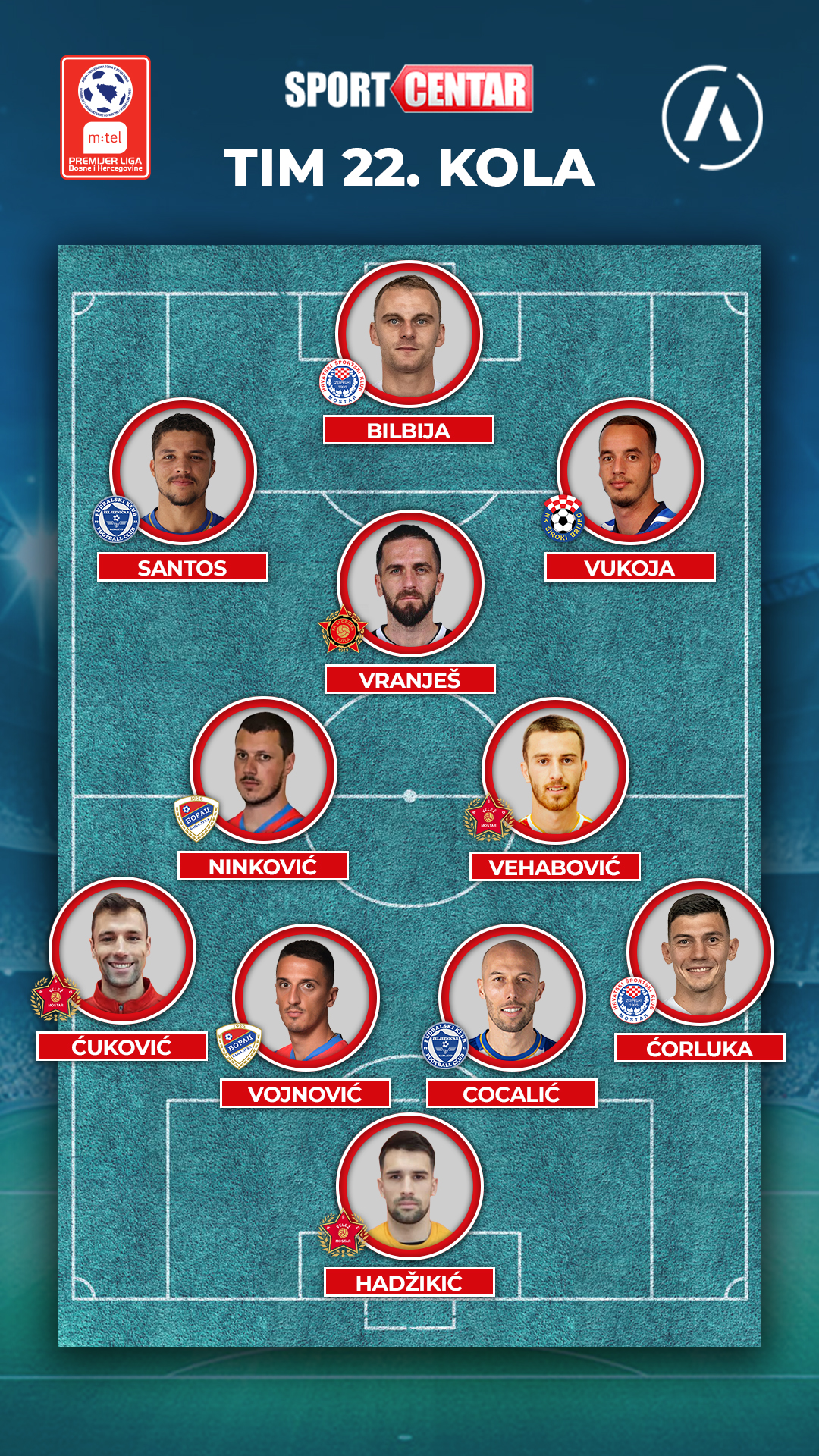 Arena Sport i redakcija portala SCsport.ba izabrali su idealni tim 22. kola m:tel Premijer lige BiH.