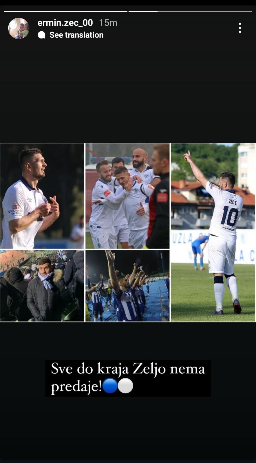 Nekadašnji fudbaler Željezničara i reprezentativac Bosne i Hercegovine, Ermin Zec, pružio je podršku svom bivšem klubu putem svog Instagram profila. Objavio je poruku koja će sigurno obradovati sve navijače Željezničara. Pogledajte o čemu je riječ: