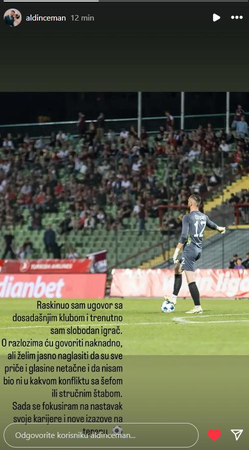 Putem društvenih mreža golman Aldin Ćeman potvrdio je da je raskinuo saradnju sa HŠK Posušje i da je od danas slobodan igrač.