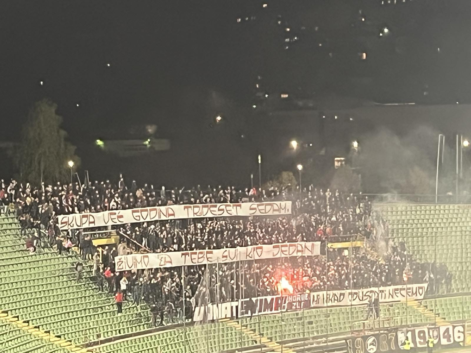 Nakon toga, prikazali su transparent sa snažnom porukom: “Skupa već godina trideset sedam, živimo za tebe, svi ko jedan”.
