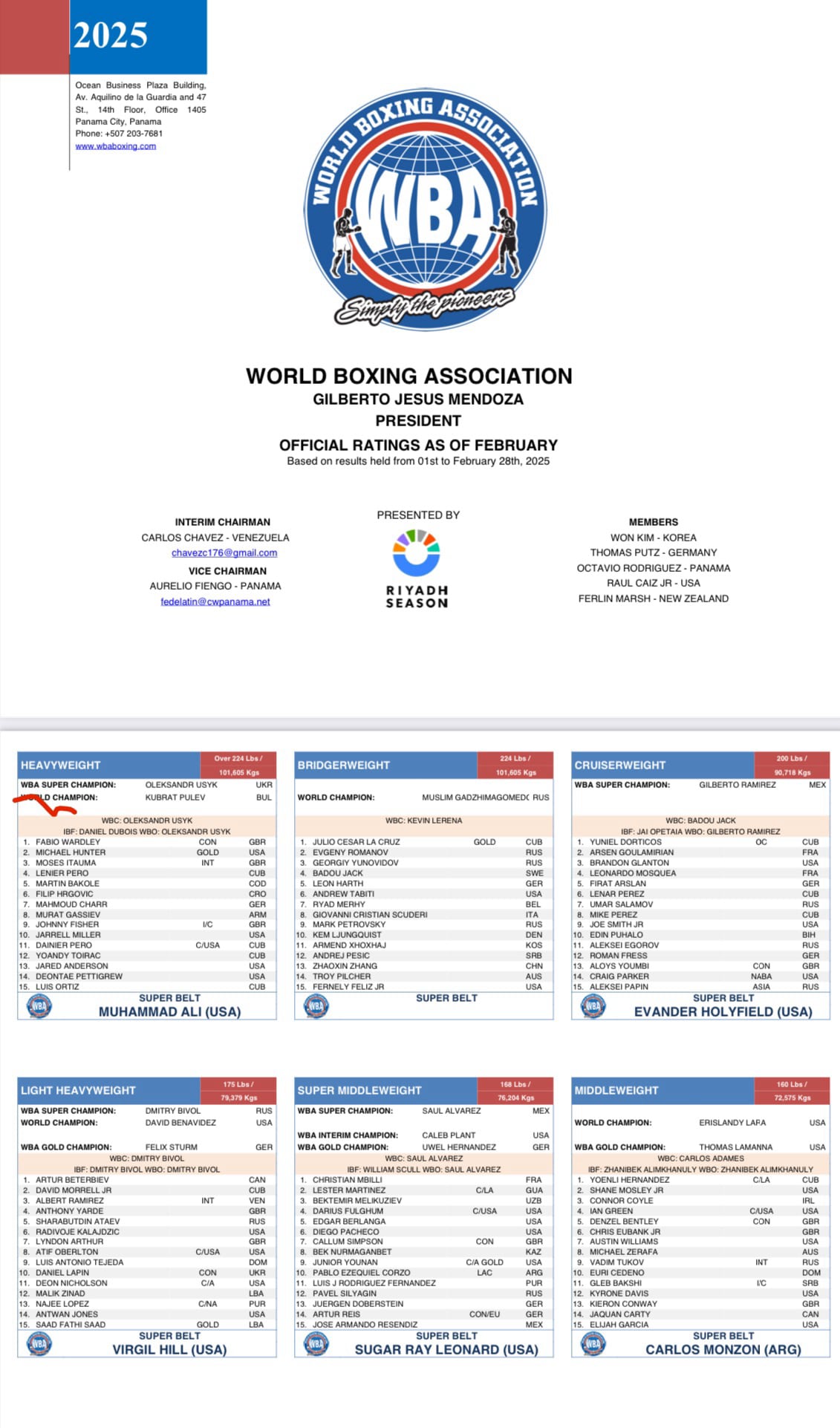 WBA uz WBC, IBF, WBO i IBO spada u najjače bokserske asocijacije, a ona je ujedno najstarija (103 godine) i u njoj su svjetski prvaci bili najbolji bokseri svijeta poput Alija, Tysona, Lewisa, Holyfielda, Klička pa do sada aktuelnih Usika, Joshue…