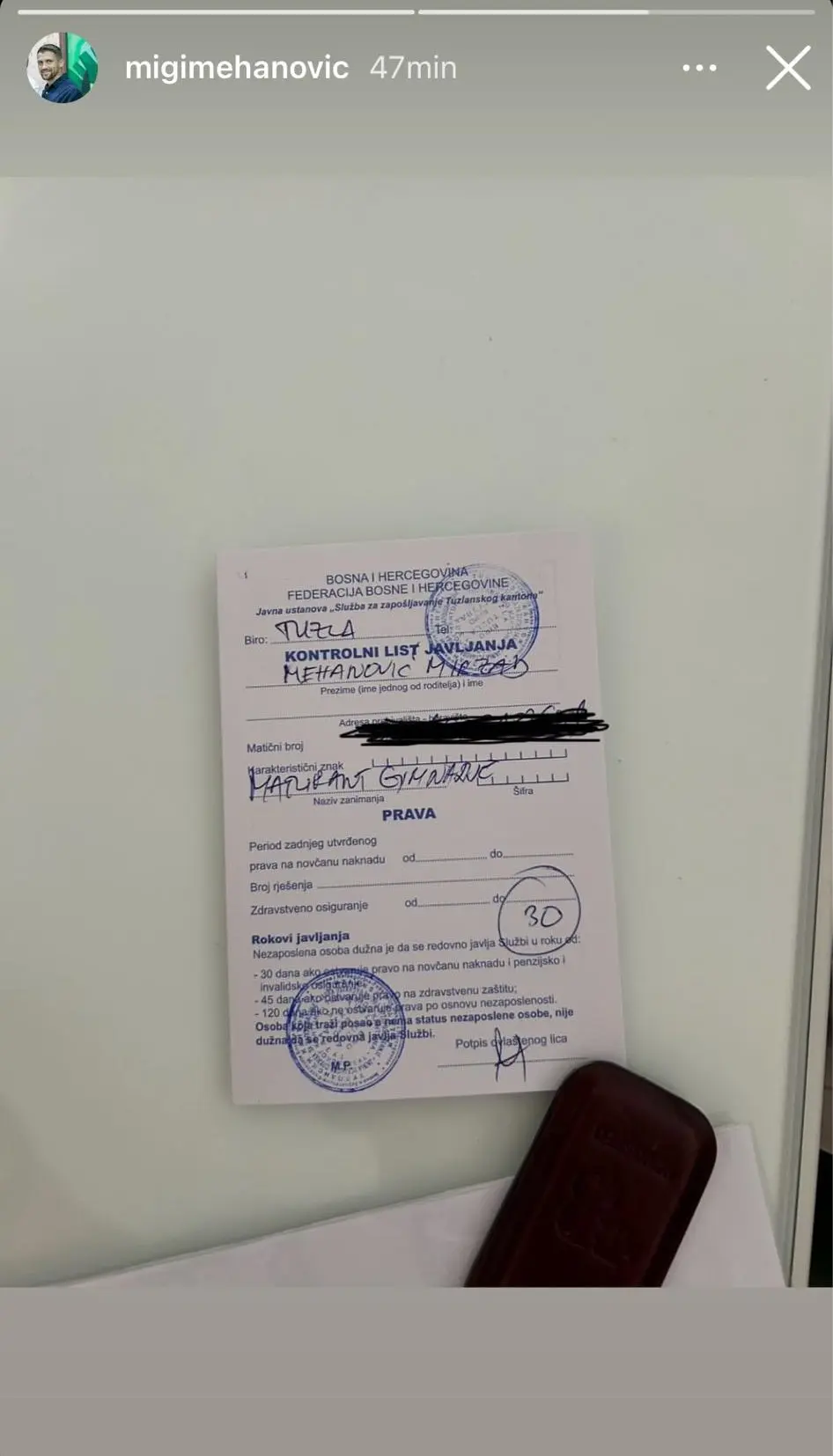 Jedan od najkorisnijih igrača WWin lige BiH u nedavno završenoj sezoni raskinuo je ugovor sa klubom i tako postao slobodan igrač. Na Istagramu je objavio fotografiju na kojoj se vidi kartica prijave na biro za zapošljavanje, prenosi faktor.