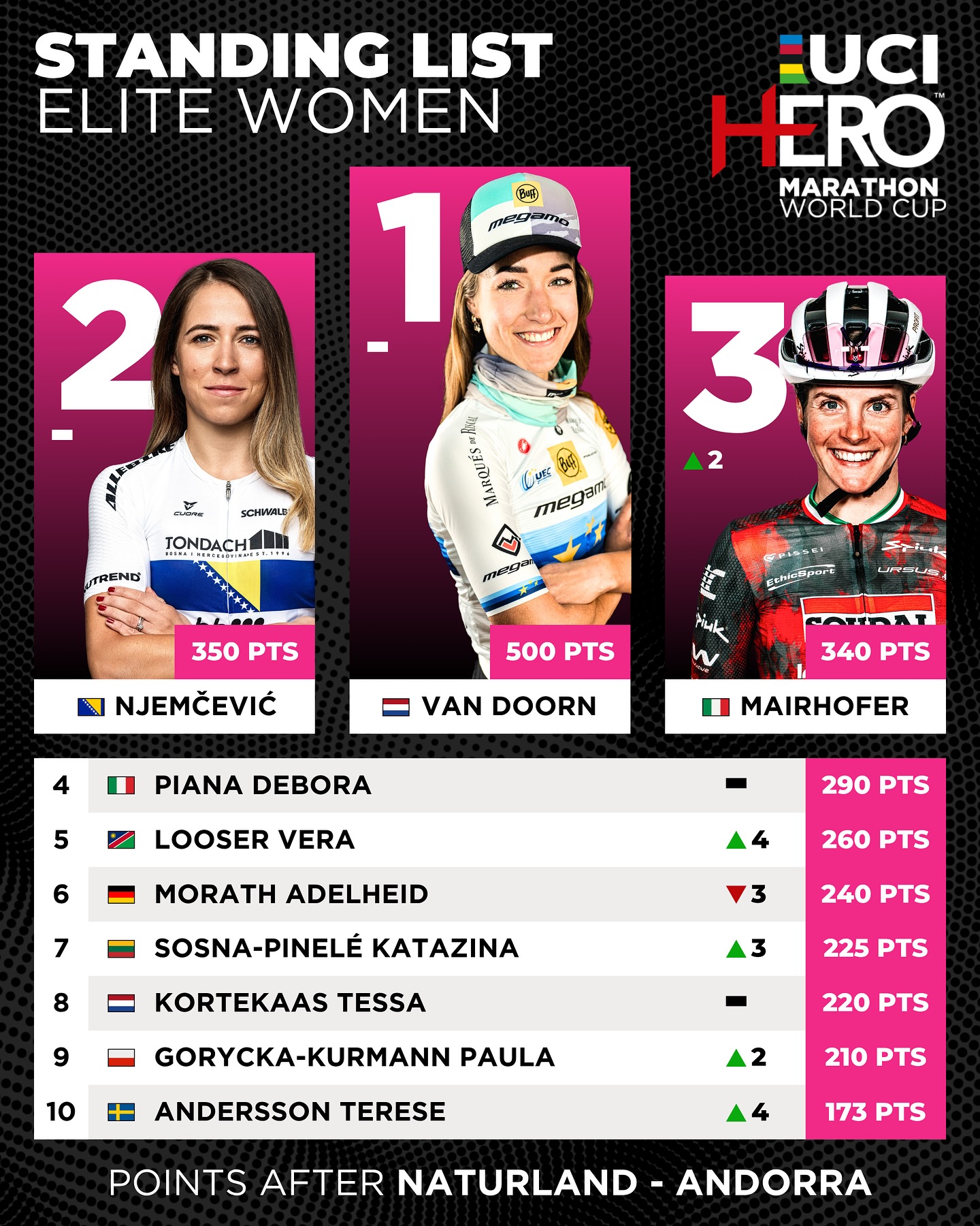Lejla Njemčević u generalnom plasmanu Svjetske serije nakon dva kola zauzima drugo mjesto sa 350 bodova iza vodeće Rose Van Doorn koja ima 500 bodova, dok je na trećem mjestu Sandra Mairhofer sa 340 bodova.
