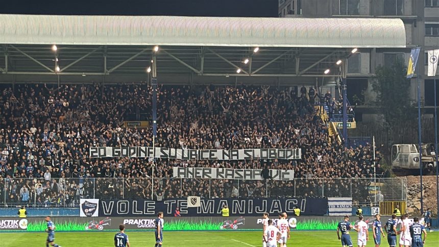 Tokom prvog poluvremena istakli su i emotivnu, ali snažnu poruku posvećenu tragično preminulom navijaču Željezničara Aneru Kasapoviću, koji je izgubio život 2005. godine nakon povratka sa gostovanja u Zenici protiv Čelika.