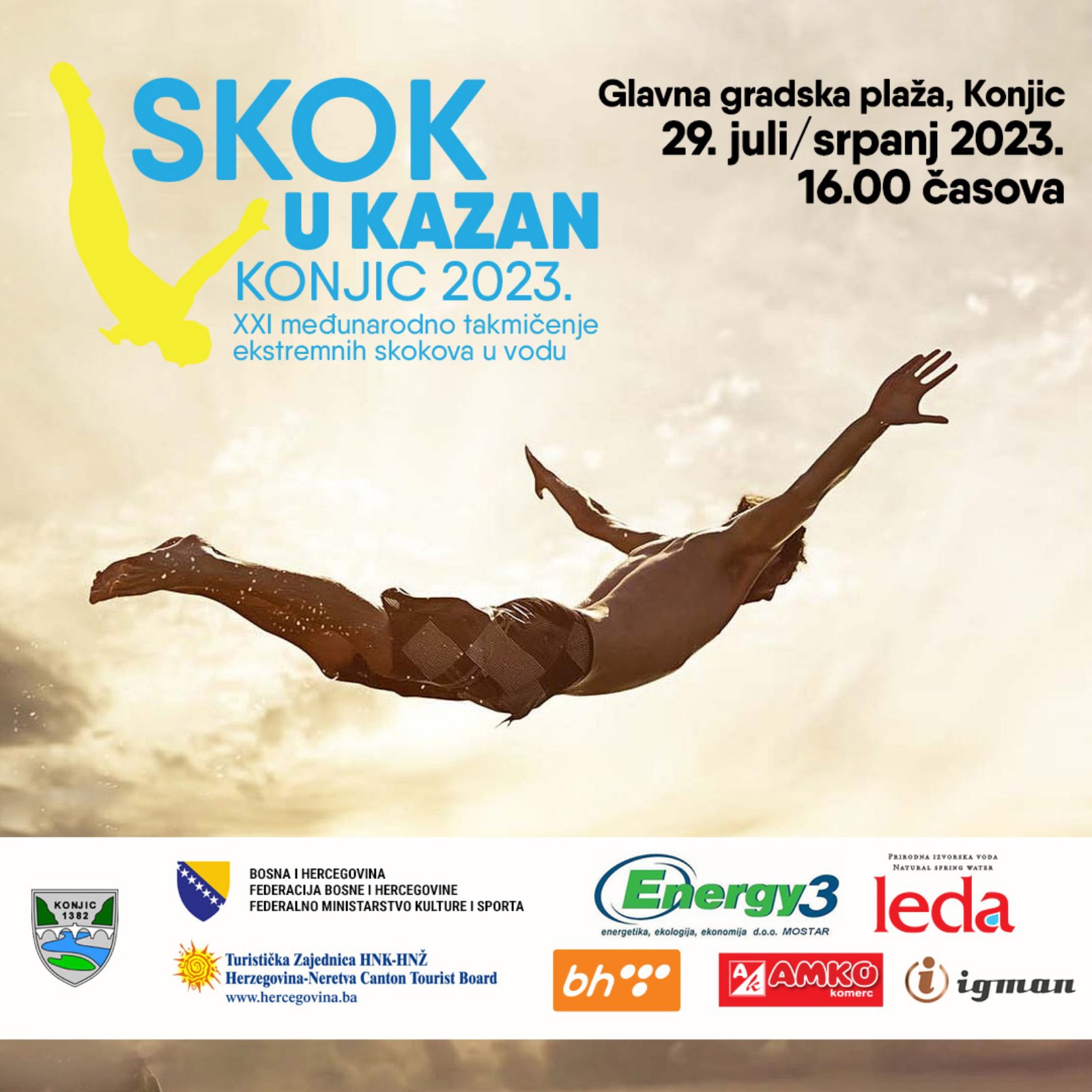 “Drago nam je da će se na plaži Stari Pazar u Konjicu okupiti nekoliko hiljada posjetilaca, zaljubljenika u ekstremne skokove u rijeku Neretvu. U Konjicu će se ponovo okupiti najbolji domaći, ali i skakači iz regiona. Titulu najboljeg skakača brani odlični Dino Bajrić”, rekli su iz organizacijskog odbora ovog međunarodnog takmičenja u ekstremnim skokovima u vodu.