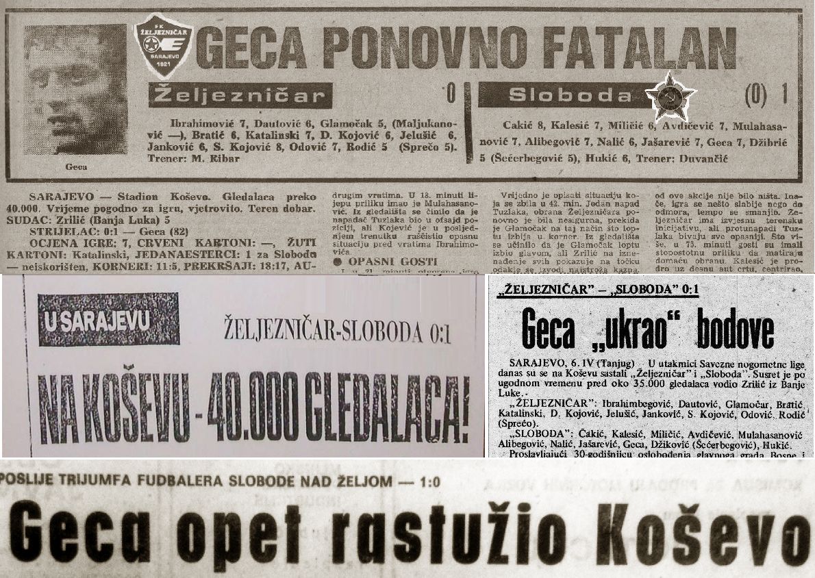 Sloboda je stigla do velike pobjede, koja je otvorila apetite za eventualnim plasmanom u Kup UEFA. Trener “Mićo” Duvančić je izjavio da su svi njegovi puleni igrali dobro, ali je izdvojio golmana Cakića, centarfora Gecu i desno krilo Nalića. Čovjek odluke, Jovan Geca, bio je presretan što je pred punim stadionom postigao gol, istakavši da mu je pobjeda nad Željom – jedna od najdražih u karijeri. Na kraju šampionata je Sloboda osvojila sedmo mjesto, Željezničar je bio deveti, ali se sezona pamti po spektaklu na Koševu 6. aprila 1975.