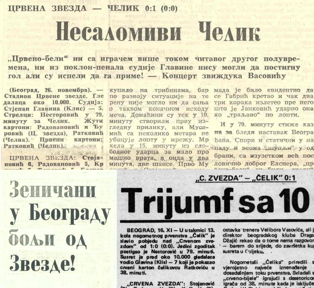 Čelik je sezonu započeo ubjedljivim porazom u bh. derbiju od Veleža (2:5) na Bilinom Polju, ali je trener Džemaludin Mušović brzo konsolidovao ekipu i u 7. kolu su Zeničani izašli iz bodovnog “minusa”. Međutim, sigurna zona je bila daleko, a svaka utakmica predstavljala važnu bitku u borbi za opstanak. Nakon domaće pobjede na Prištinom (2:1) u 12. kolu, Zeničani su se našli “iznad crte” Šajberove tabele, na diobi 14-16. mjesta. Društvo su im pravili Željezničar i Crvena Zvezda, koja je bila naredni protivnik Čelika, na današnji dan prije 38 godina.