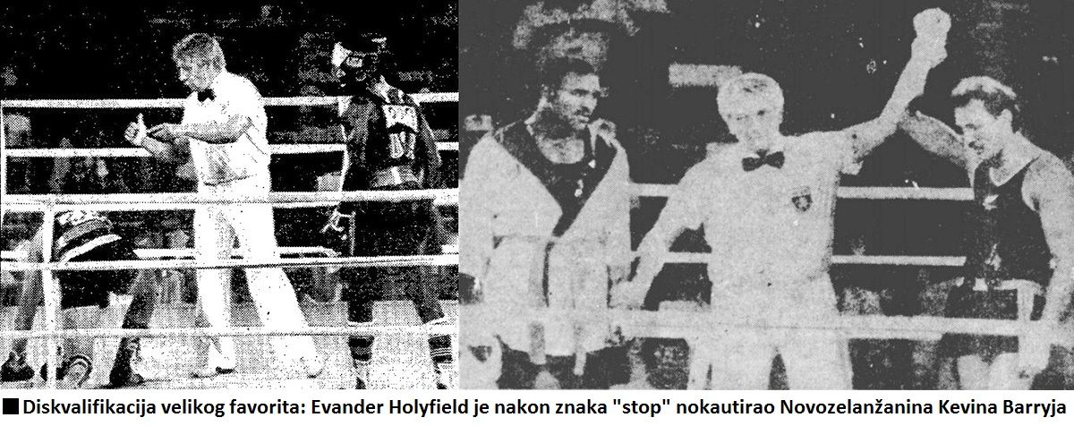 Holyfiled je dominirao polufinalnom borbom kada se u drugoj rundi desio jedan od najkontroverznijih trenutaka u historiji ameterskog boksa. Nakon što je sudija dao znak “stop”, američki bokser je raspalio Barryja i poslao ga na pod. Nozelanđanin nije mogao nastaviti borbu, a sudija je, poštujući pravila, diskvalifikovao Holyfileda! Ionako kontroverzan završetak borbe dodatno je “raspalila” činjenica da je sudija u ringu bio Jugosloven Gligorije Novičić, što je razbjesnilo Amerikance je su smatrali da je diskvalifikacijom Holyfielda želio pomoći Josipoviću. Domaćini su uložili žalbu koju je odbila Međunarodna bokserska federacija. Pošto je Barry nokautiran nepropisnim udarcem – pravilima je predviđeno da mora pauzirati 28 dana.