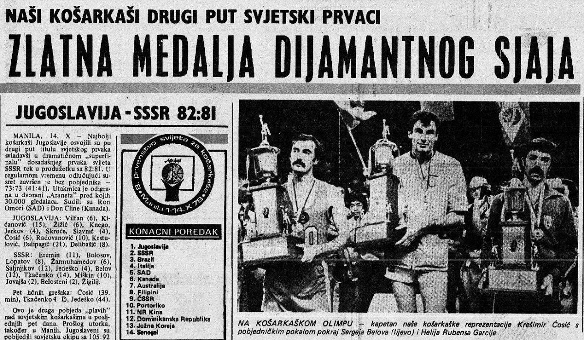Za jugoslovensku košarku su ‘70-e godine prošlog stoljeća bile zlatno doba. Sve je počelo s osvajanjem titule svjetskog prvaka u Ljubljani (1970), nastavilo se s tri uzastopna evropska zlata (1973, 1975, 1977), a između ovih uspjeha u riznicu su stigla dva srebra – na Svjetskom prvenstvu u Portoriku (1974) i Olimpijskim igrama u Montrealu (1976). Stoga ne čudi da je reprezentacija Jugoslavije u ulozi favorita stigla na Svjetsko prvenstvo na Filipinama, od 1. do 14. oktobra 1978.