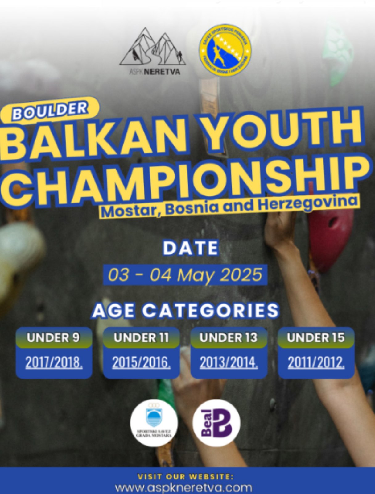 Mostar će 3. i 4. maja 2025. godine postati epicentar sportskog penjanja u regionu jer će ugostiti Balkansko prvenstvo u sportskom penjanju za mlađe kategorije u disciplini Boulder (Balkan Youth Under 15 Championship in Boulder).