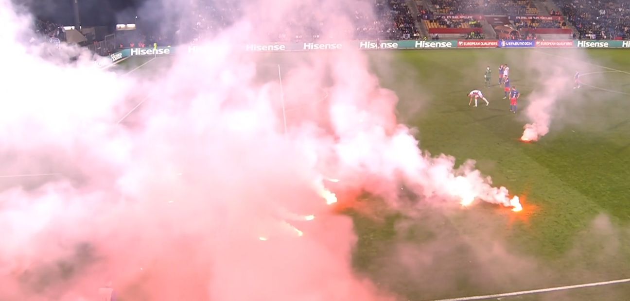 Tada su sa nekoliko baklji zasuli teren, a čini se da je nekolicina njih pokušala i da utrči na isti s fantomkama na glavama (!?).