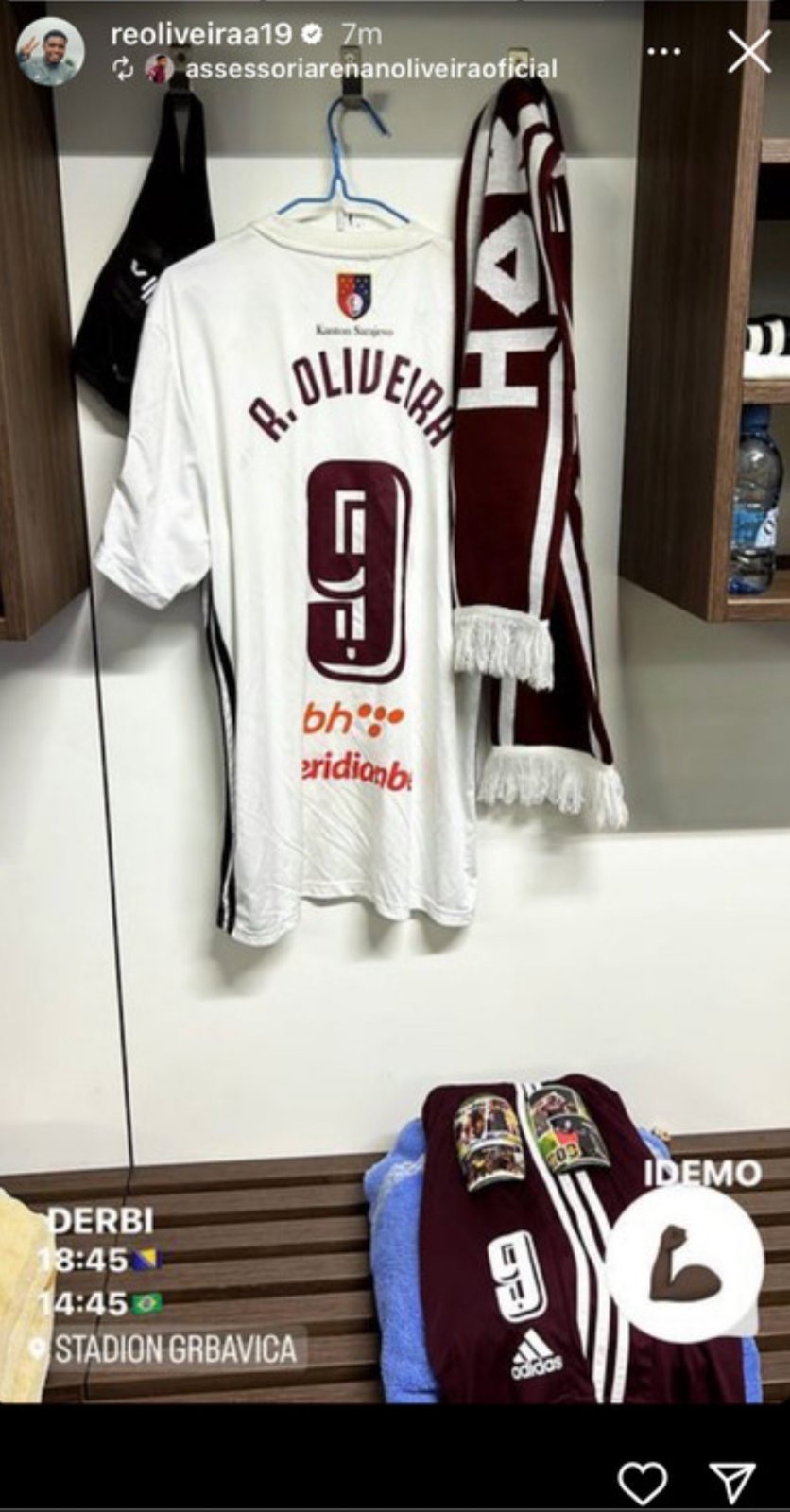 Renan Oliveira je na Instagramu obradovao navijače Sarajeva, tako što je pored dresa stavio šal Hordi zla i to objavio na story.