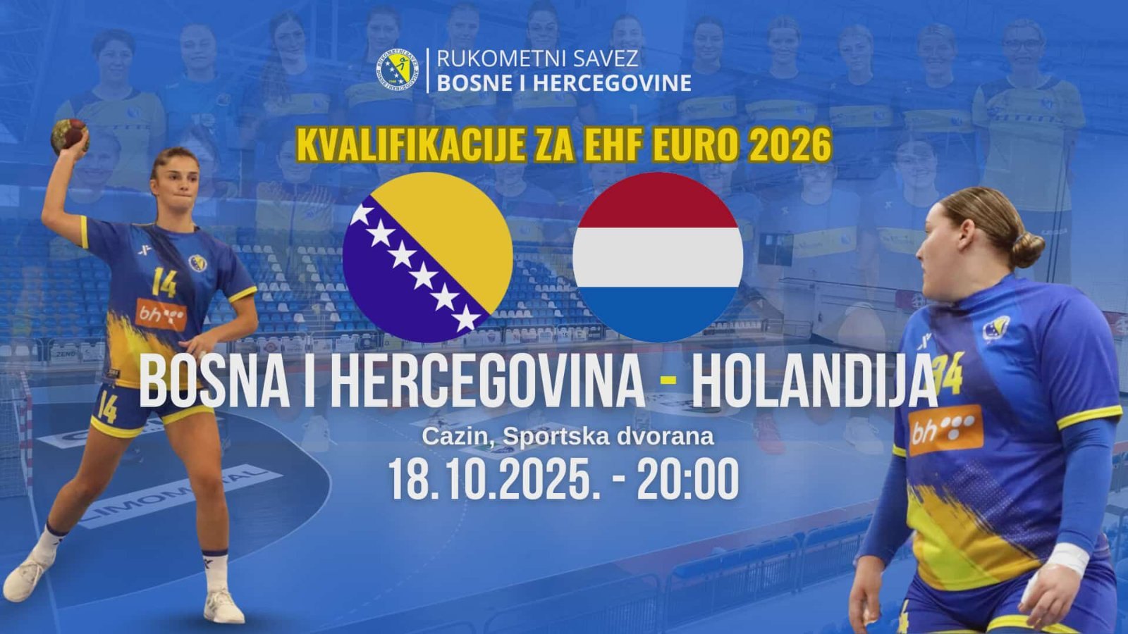 Ženska rukometna reprezentacija Bosne i Hercegovine dočekat će selekciju Nizozemske u Cazinu 18. oktobra u okviru kvalifikacija za Evropsko prvenstvo.