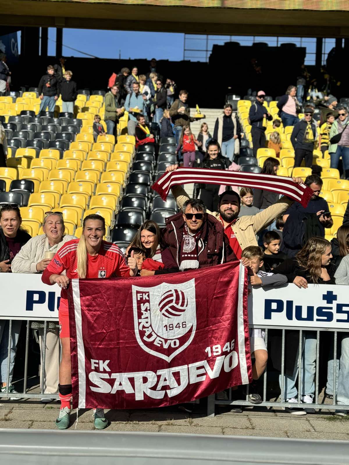 Naravno, priliku da bodri bordo dame nije propustio Nefić koji se pojavio na tribinama sa zastavom FK Sarajevo. Na kraju se slikao i sa golmanicom kluba – Enverom Hasanbegović.