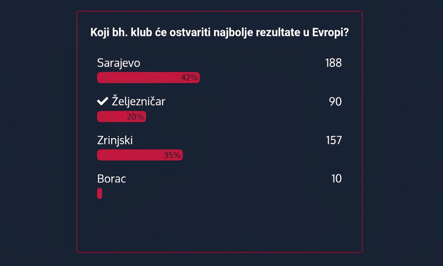 Na pitanje koje je glasilo “Koji bh. klub će ostvariti najbolje rezultate u Evropi?” bila su ponuđena četiri odgovora – FK Željezničar, FK Sarajevo, FK Borac i HŠK Zrinjski.