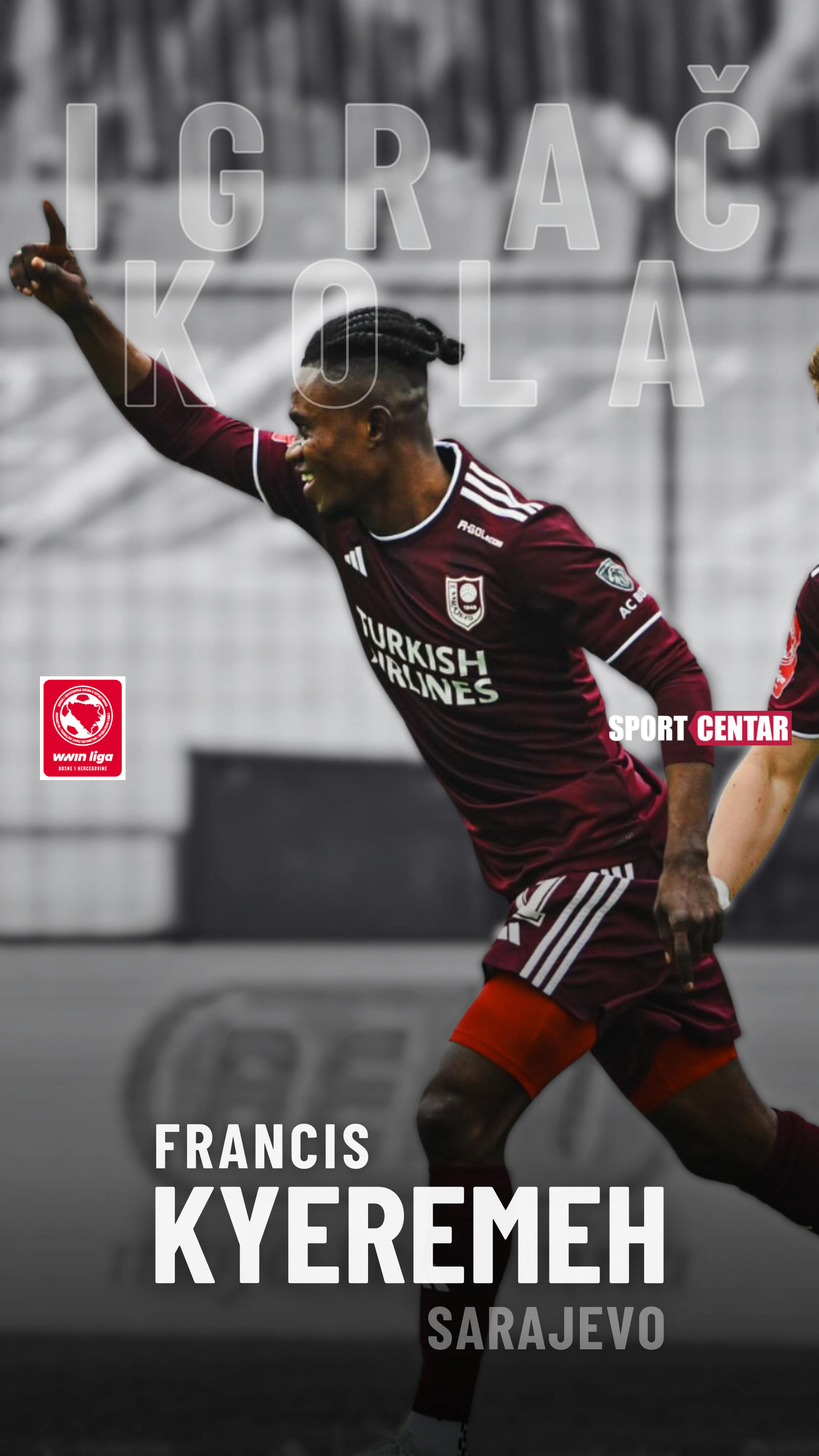 Kyeremeh je odigrao briljantan derbi protiv Željezničara. Postigao je gol, izborio penal i bio najopasniji igrač Sarajeva. Redakcija Sport Centra ga je proglasila igračem kola.