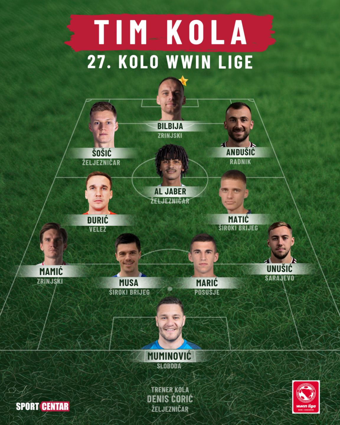 Dvadeset sedmo kolo WWin lige Bosne i Hercegovine donijelo je pravi spektakl za ljubitelje fudbala. Viđeno je mnogo golova, neizvjesnih utakmica i individualnih majstorija koje su obilježile kako ofanzivnu, tako i defanzivnu stranu igre. Među brojnim istaknutim pojedincima, izabrali smo tim kola sastavljen od fudbalera koji su svojim igrama zasluženo se našli među najboljima.