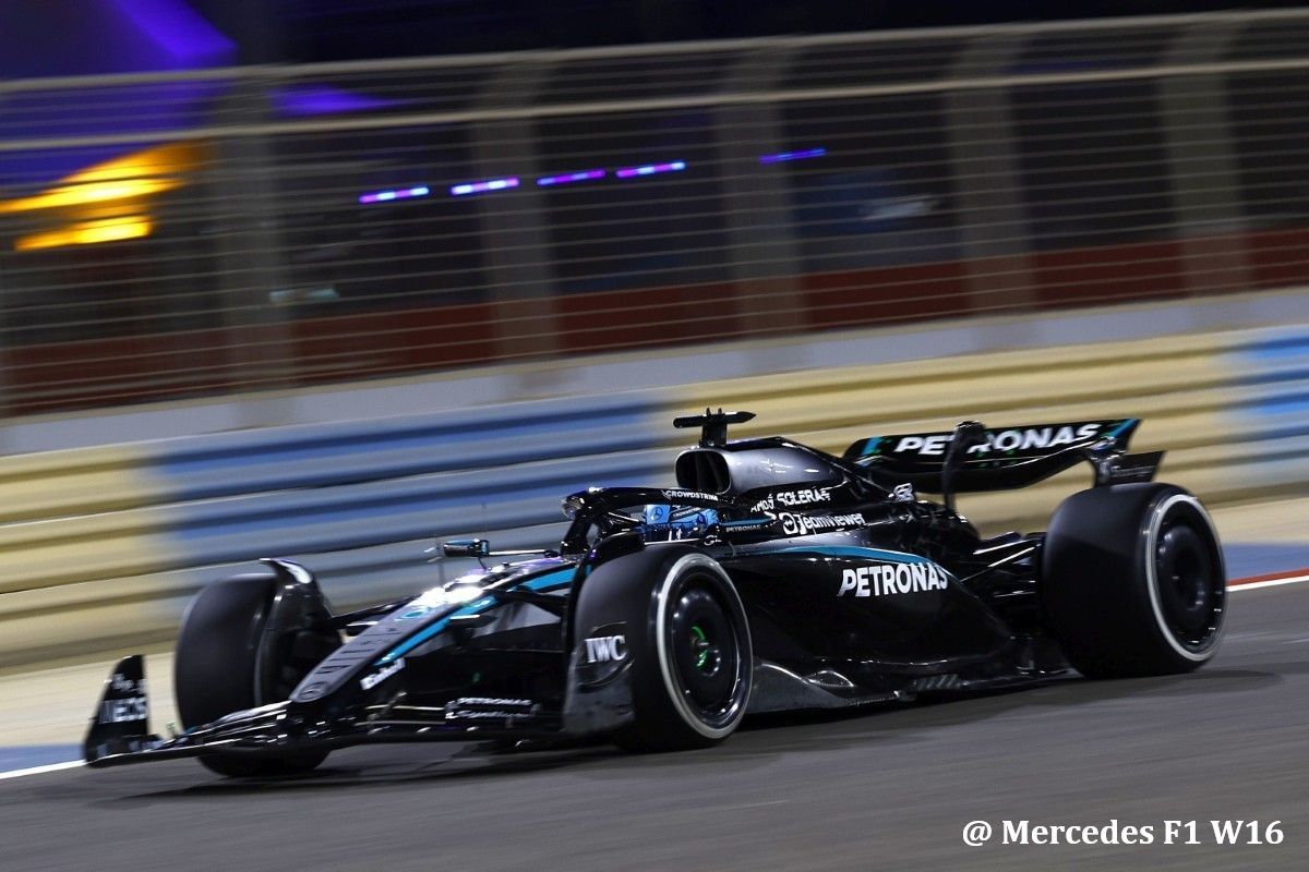 Poput Ferrarija, ni Mercedes nije bio uvjerljiv u simulacijama utrka, iako čisti tempo bolida W16 izgleda obećavajuće, što je pokazalo najbolje vrijeme kruga Georgea Russella posljednjeg dana testiranja. Bolid “Srebrenih strijela” je imao popriličnih problema s trošenjem guma, naročiti novi vozač Andrea Kimi Antonelli. Mladi 19-godišnji Italijan, koji je zamijenio Lewisa Hamiltona, ugodno je iznenadio jer je već na prvim testovima stigao blizu Russella – razlika između dvojice vozača je vjerojatno samo desetinka sekunde, s tim da Antonelli još ima poteškoća s navikavanjem na bolid i upravljanjem trošenja guma.