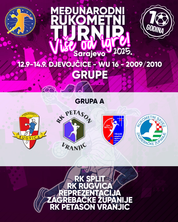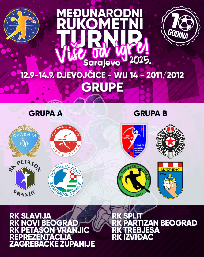 Riječ je o jubilarnom 10. međunarodnom rukometnom turniru pod nazivom „VIŠE OD IGRE“ koji se igra u dvije generacije djevojčica (U 16 i U14) od 12. do 14. septembra ove godine.