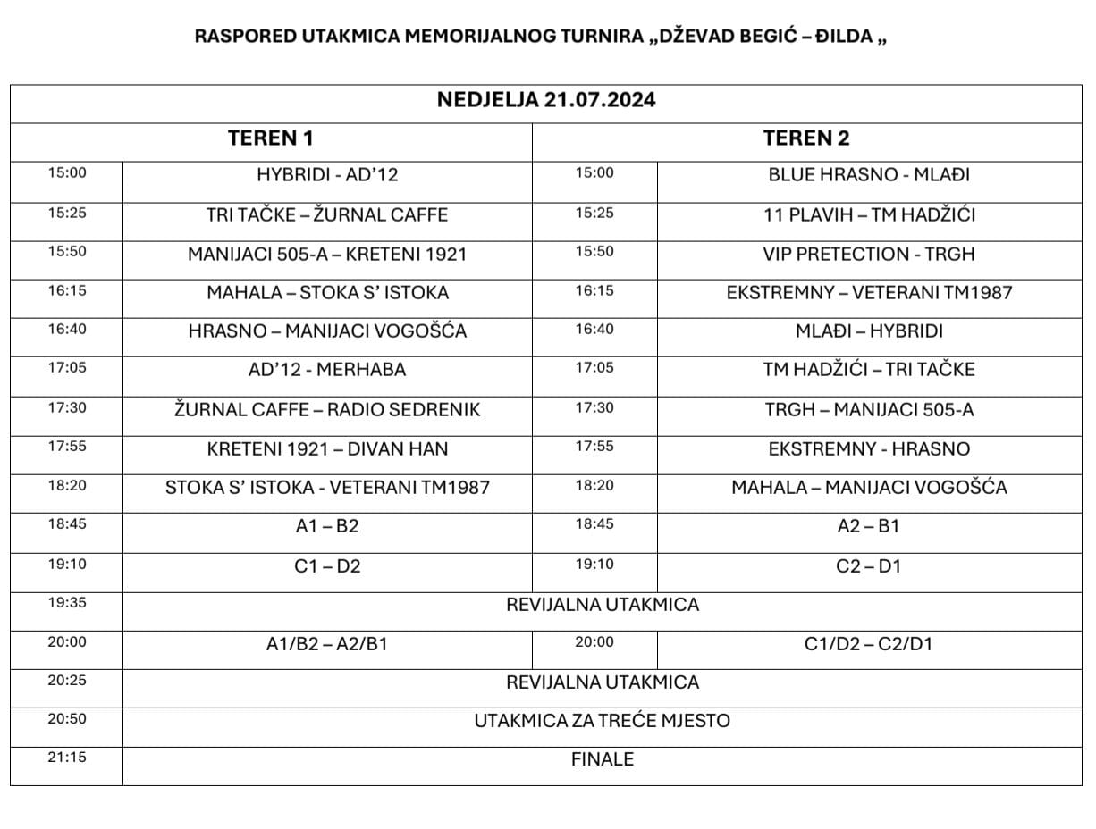 Nakon što je jučer okončan veći dio grupne faze takmičenja na memorijalnom turniru “Dževad Begić Đilda”, danas nas očekuje završnica.