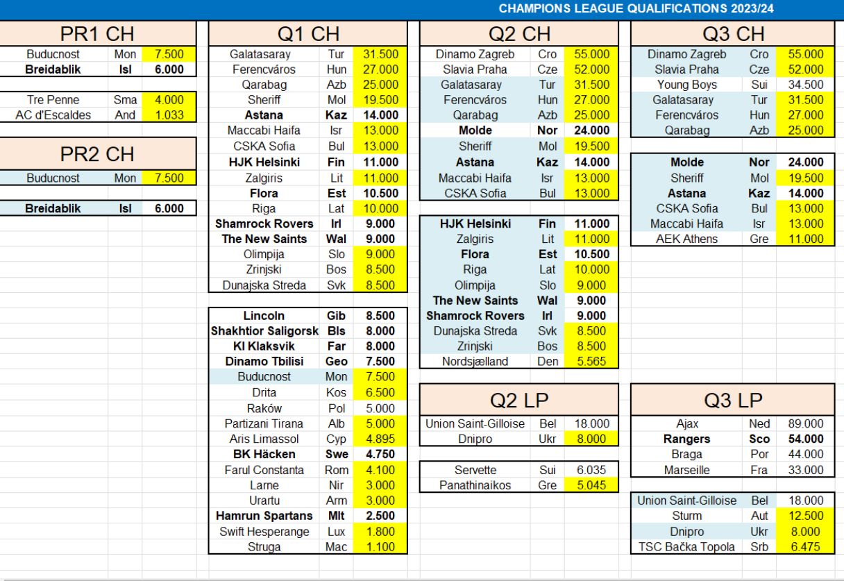 S druge strane, kao nosioci bi izbjegli ekipe kao što su Galatasaray, Ferencvaros, Qarabag, Sheriff, Astana, Maccabi Haifa, CSKA Sofia…